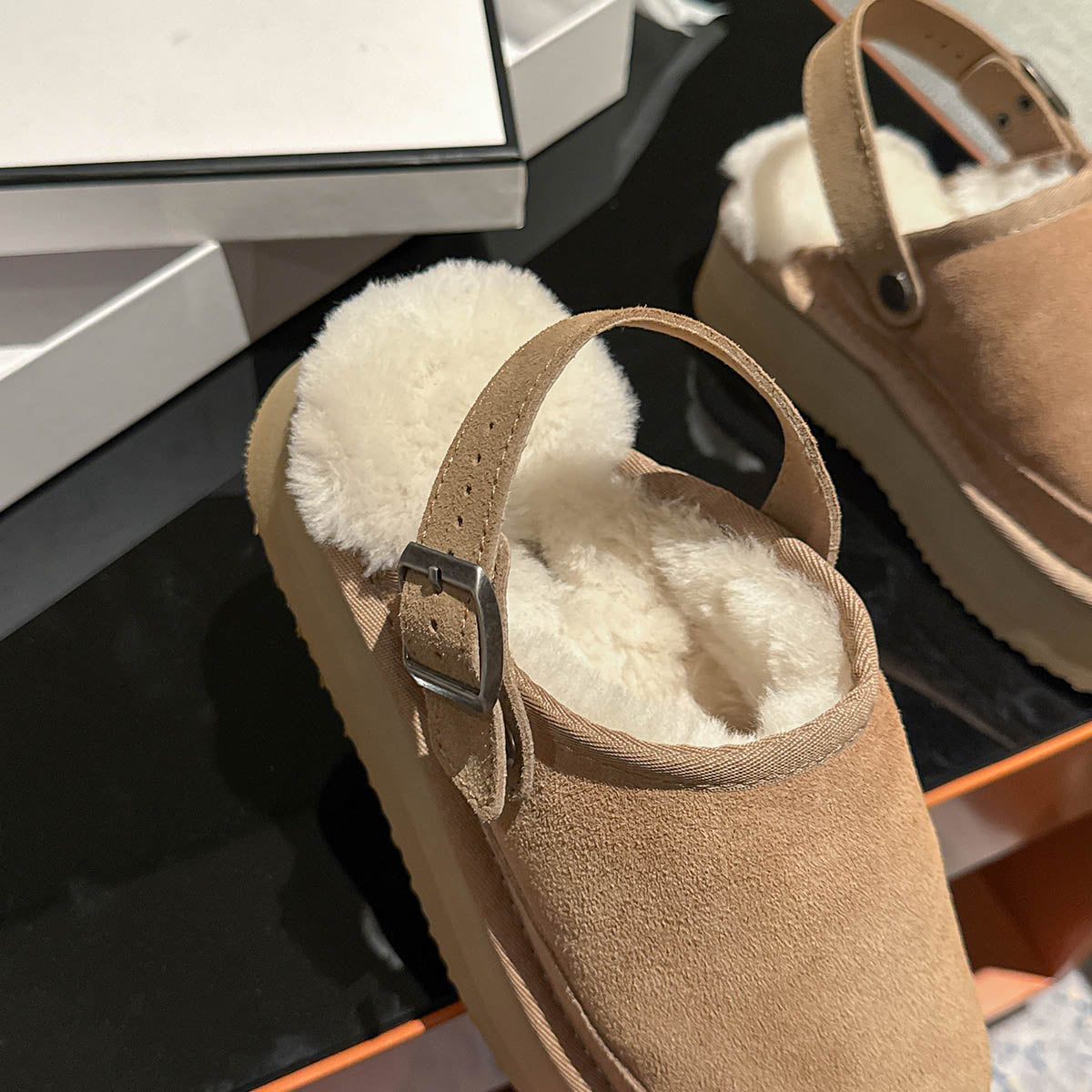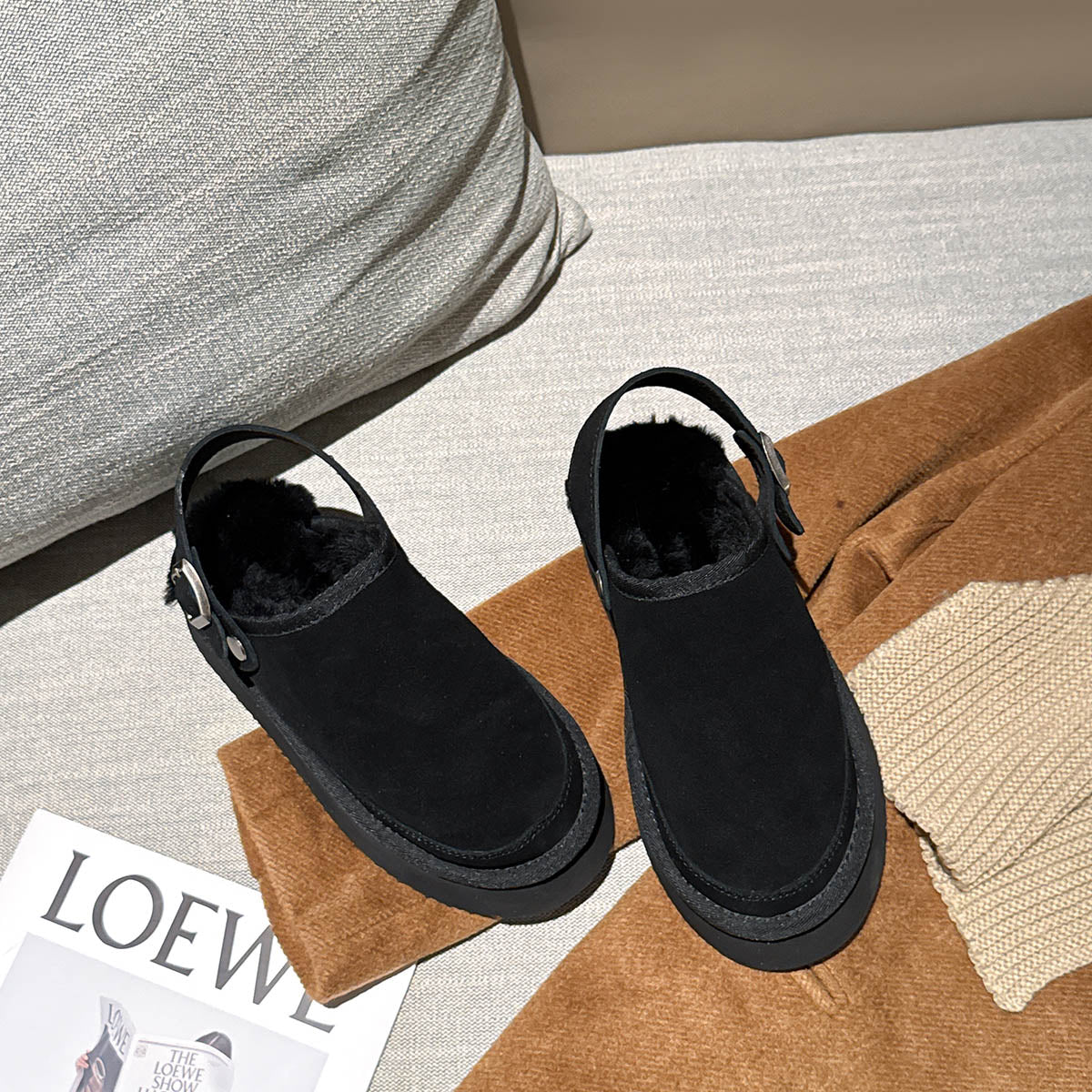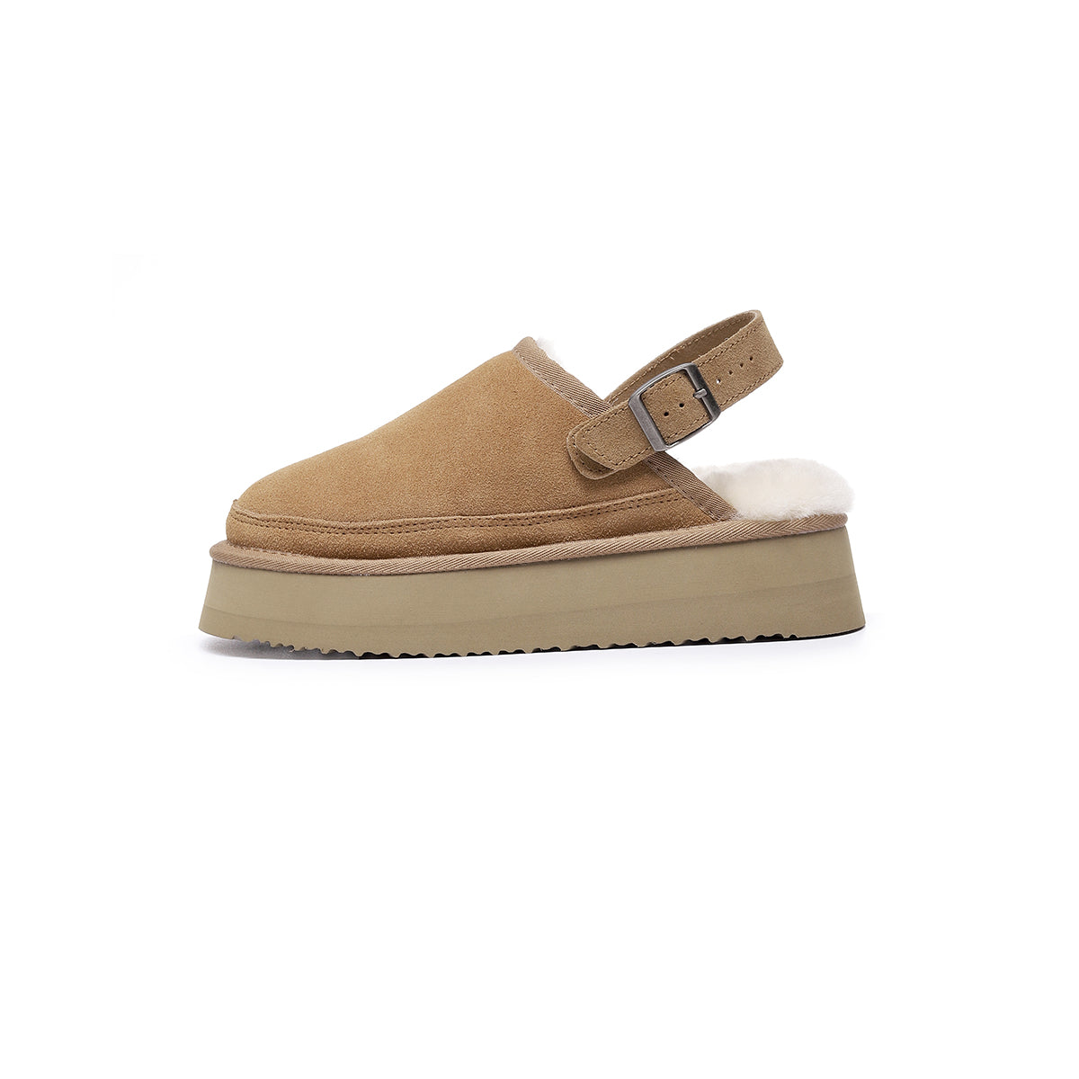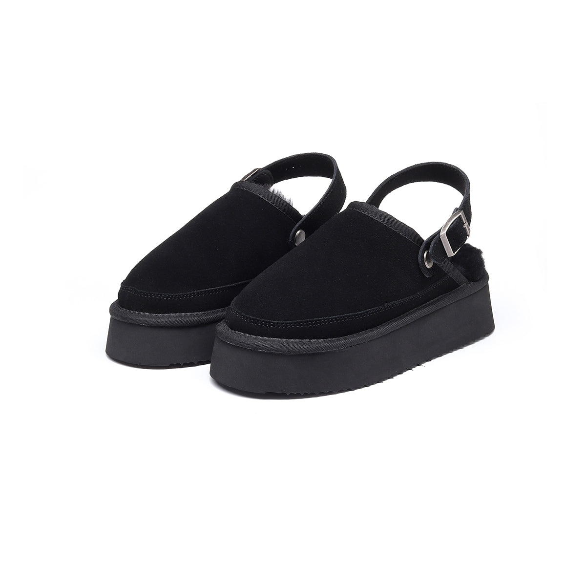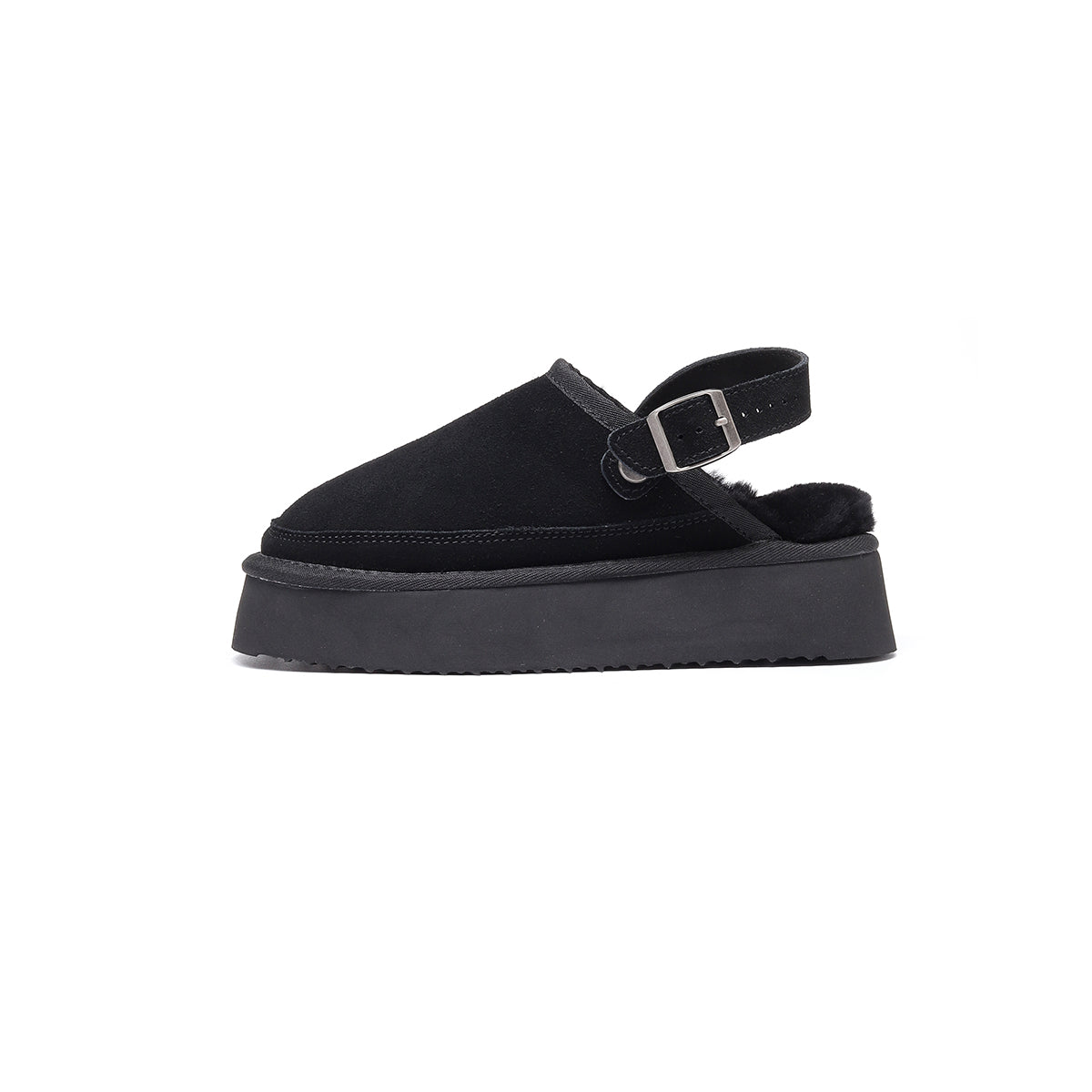 Designed for three-season wear, these shoes feature a premium suede-finish leather upper and plush wool lining for breathable warmth. The 4 cm platform sole adds subtle height and elongates the legs, while the adjustable back strap ensures a secure and customized fit. Simple, textured, and stylish — perfect for everyday casual looks.