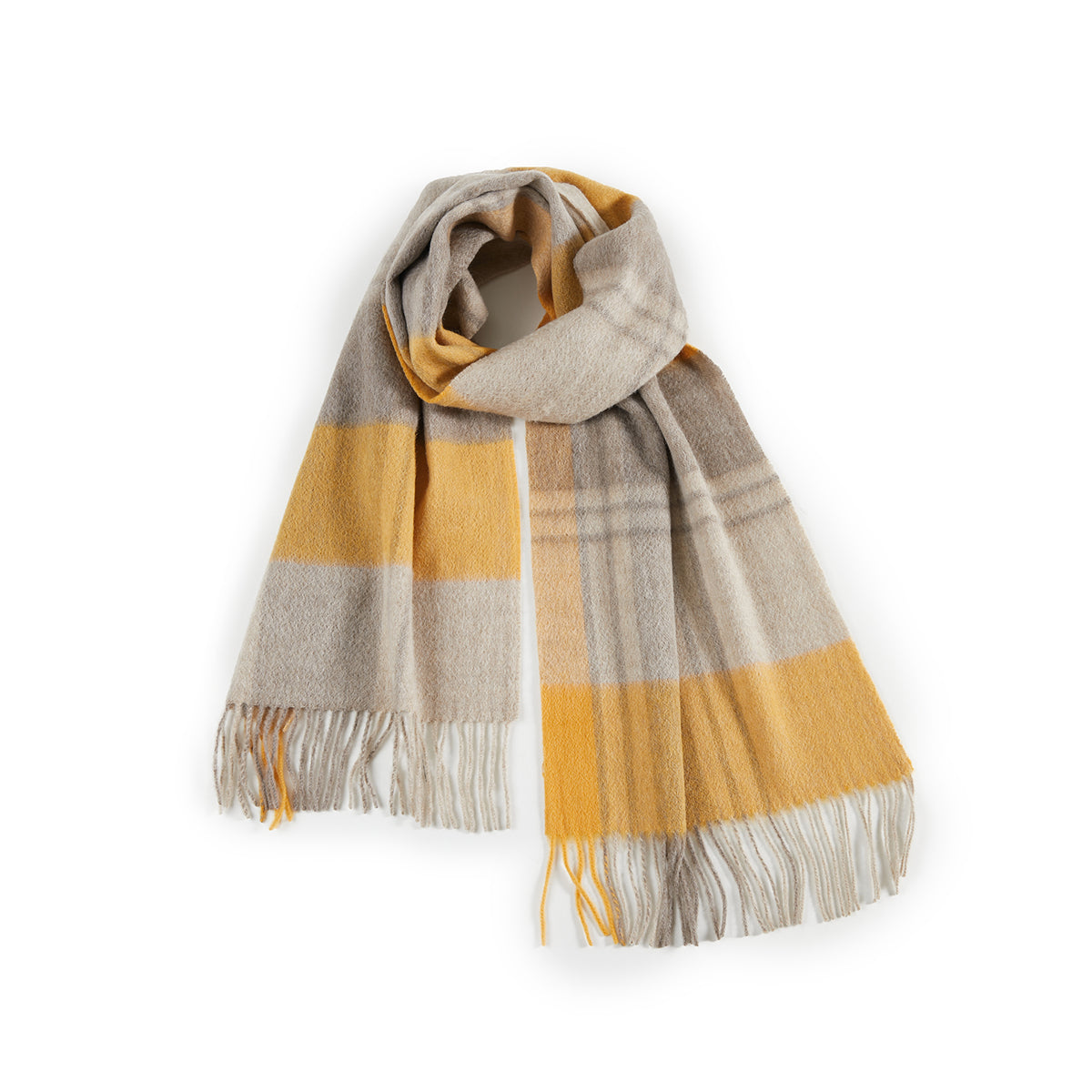 BRITISH STYLE WOOL PLAID SCARF 970117(GREY YELLOW)