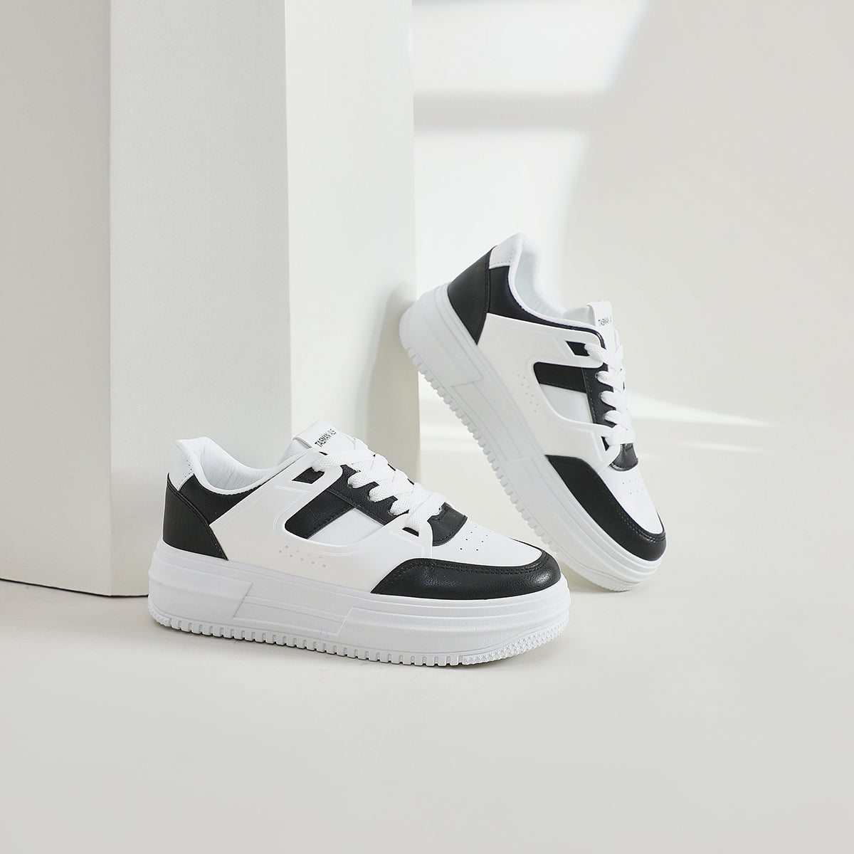 Blending sporty vibes with fashion-forward details, these sneakers feature a fresh colorblock design and chunky sole that adds both height and style. The cushioned PU insole delivers a soft, cloud-like feel underfoot, while the rubber outsole ensures grip and durability for all-day wear.