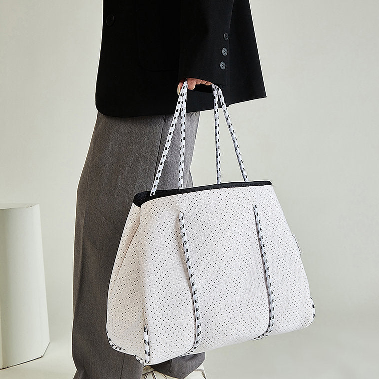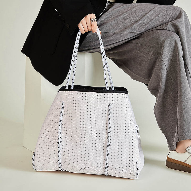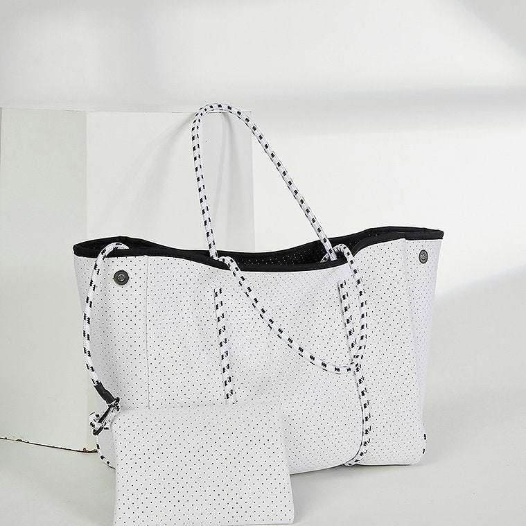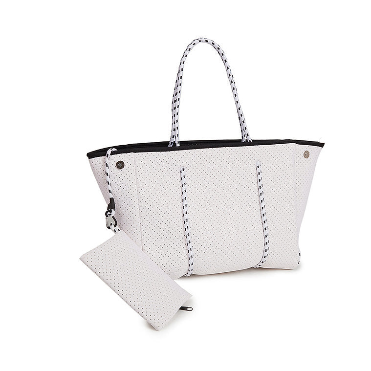 Pack your sunshine essentials into the Daily Beach Bag and matching pouch set. Ideal for a relaxed day at the beach or a casual summer outing.