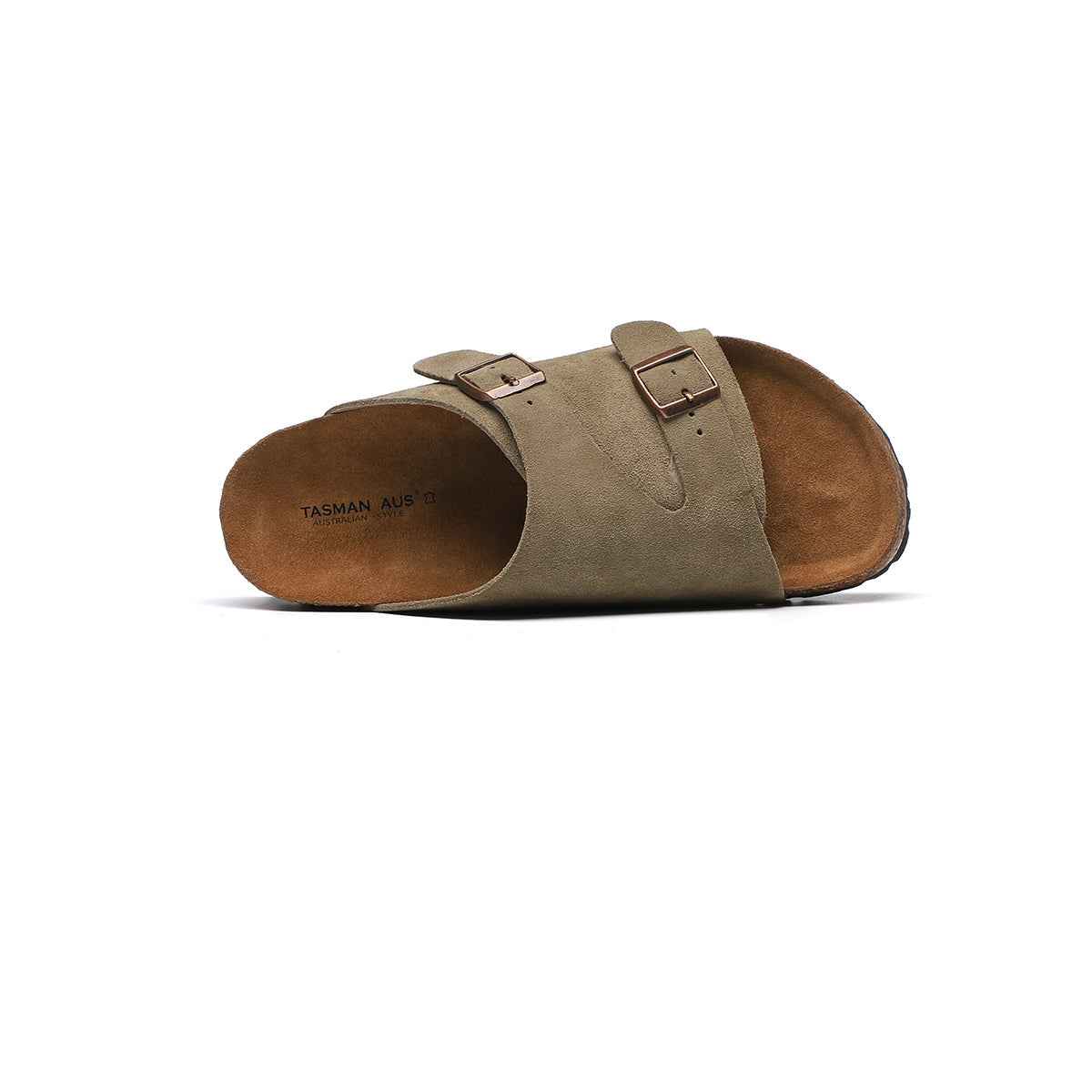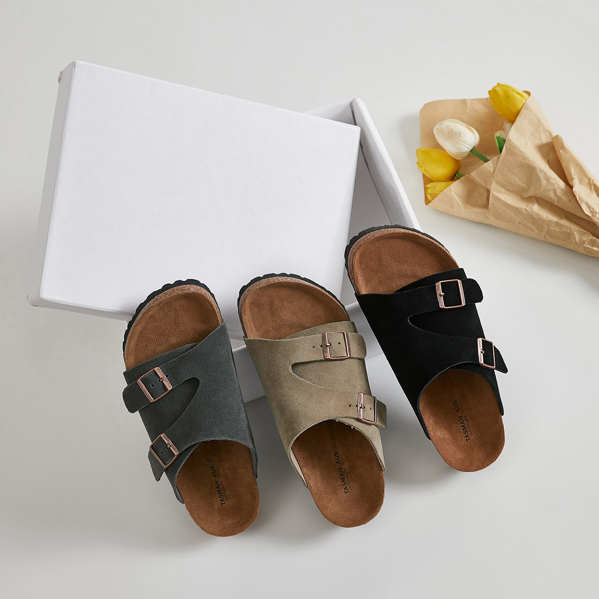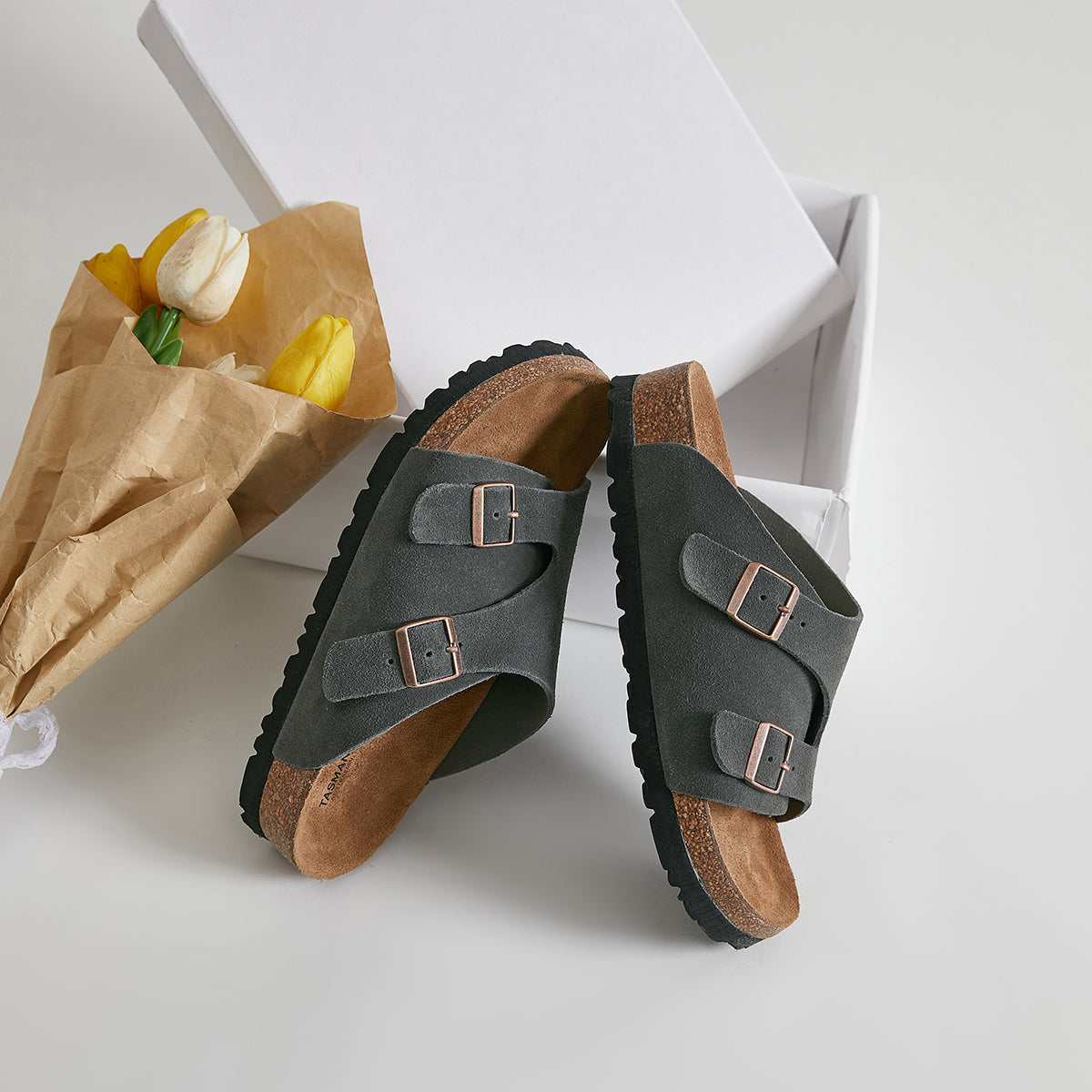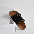 Crafted from split cow suede and set on a soft cork-rubber sole, these sandals are made for effortless comfort and classic style. The adjustable buckle straps offer a secure fit, while the cushioned footbed molds to your step. Perfect for everyday wear, they’re the kind of shoes you’ll never want to take off — stylish, supportive, and irreplaceably comfortable.