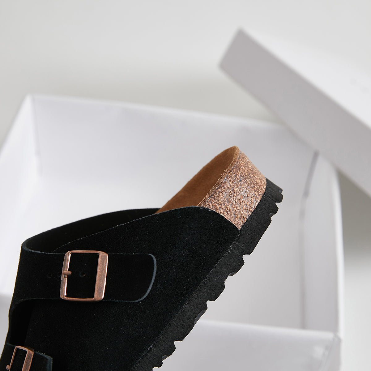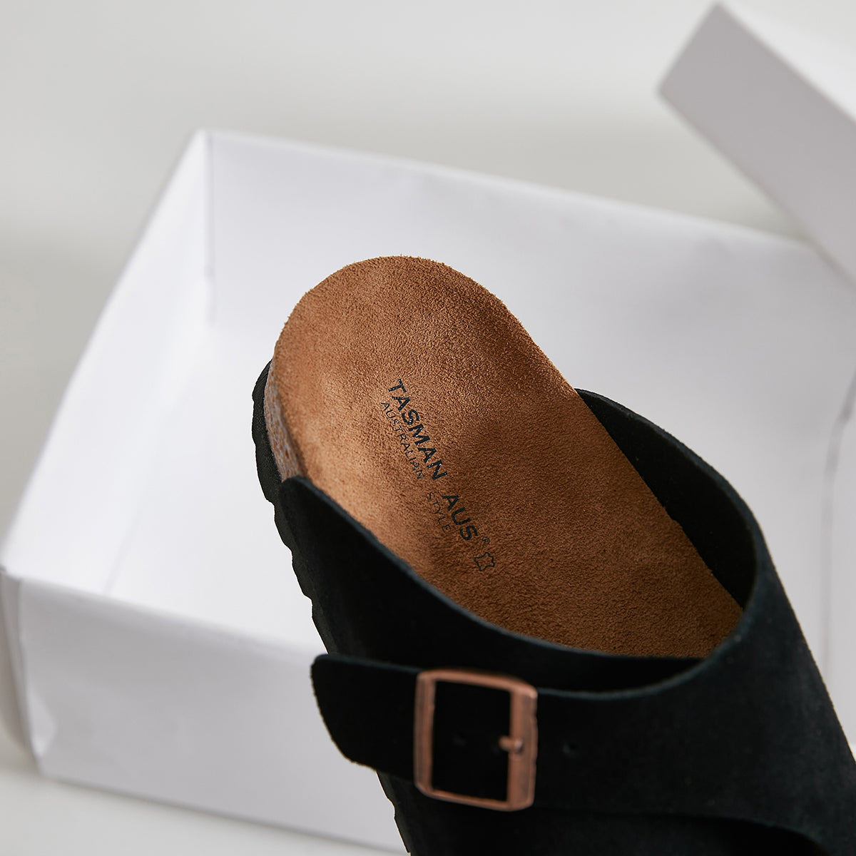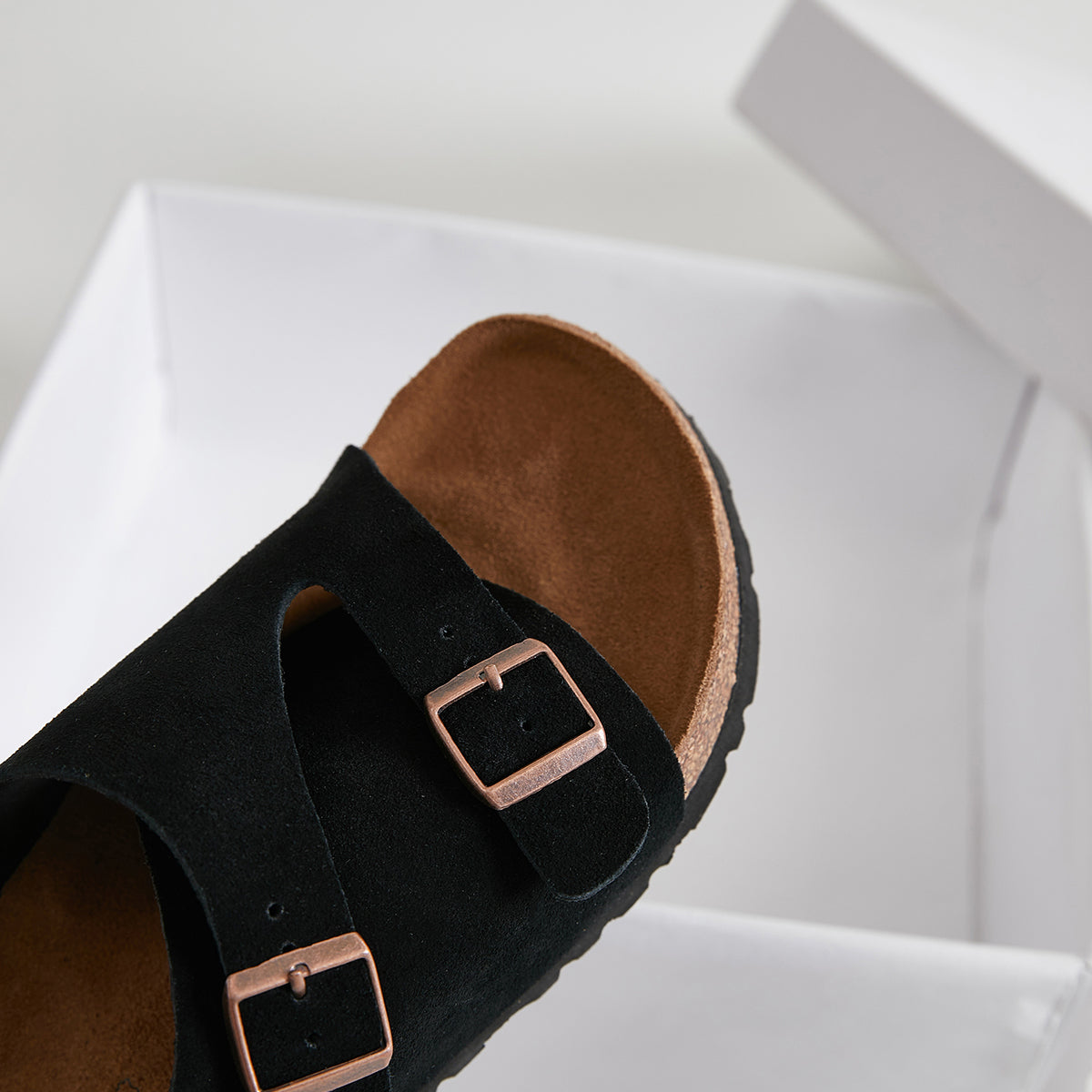 Crafted from split cow suede and set on a soft cork-rubber sole, these sandals are made for effortless comfort and classic style. The adjustable buckle straps offer a secure fit, while the cushioned footbed molds to your step. Perfect for everyday wear, they’re the kind of shoes you’ll never want to take off — stylish, supportive, and irreplaceably comfortable.