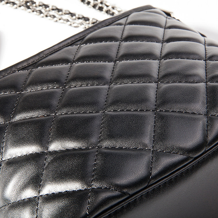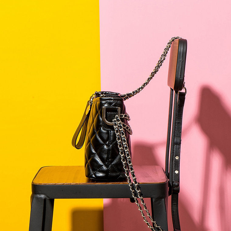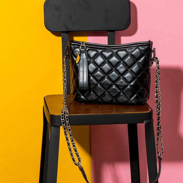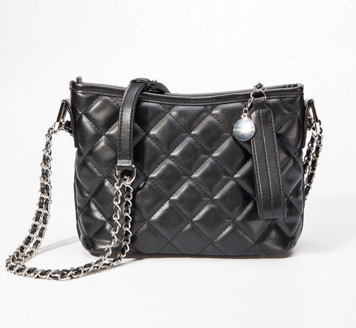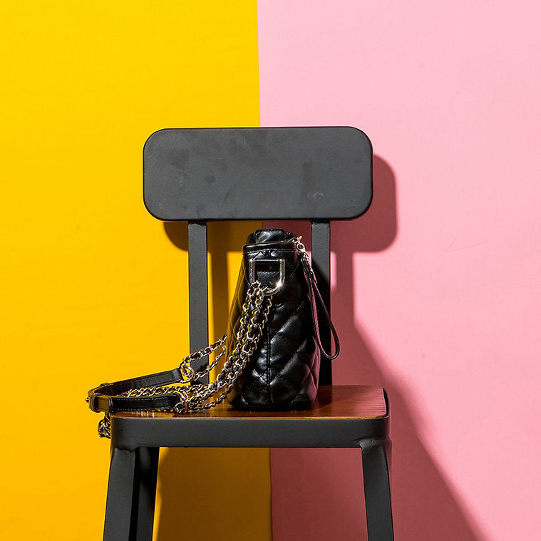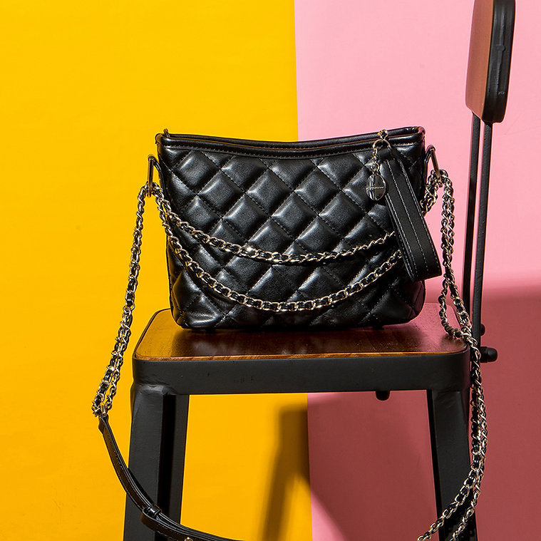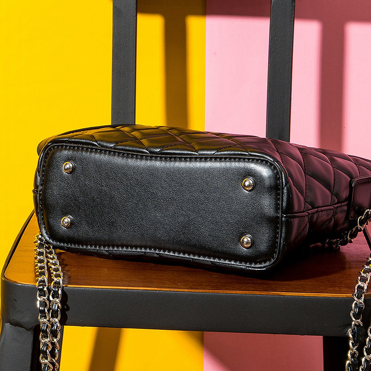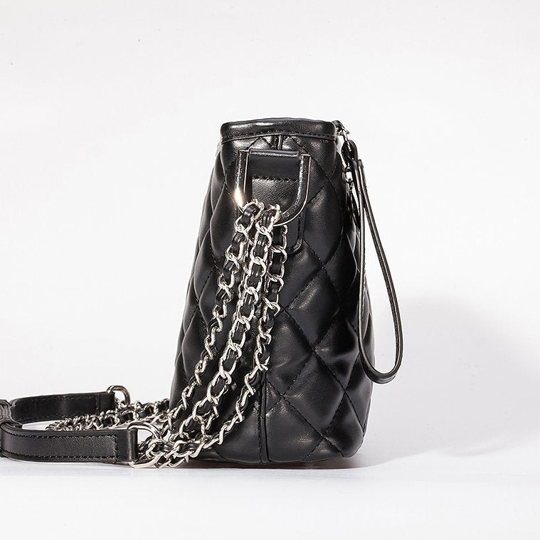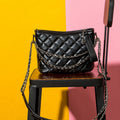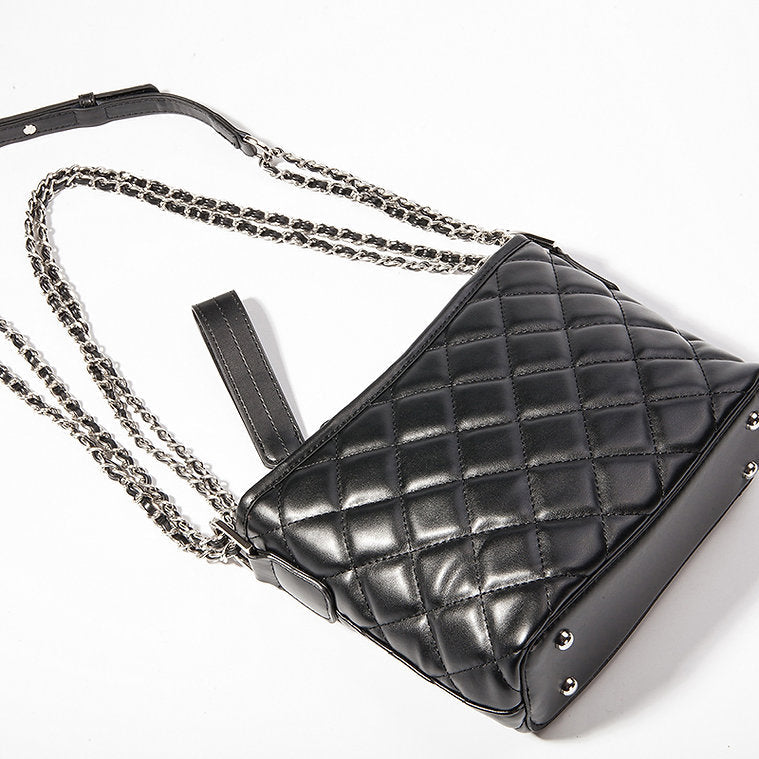 Chic and modern, the HOBO BAG in blue combines sustainability with standout design. Crafted with eco-friendly materials and lined with thick satin fabric, it features a quilted diamond pattern and bold metal chain detailing for a stylish finish. A zippered interior pocket adds extra function to its sleek shape — ideal for daily wear or evening outings.