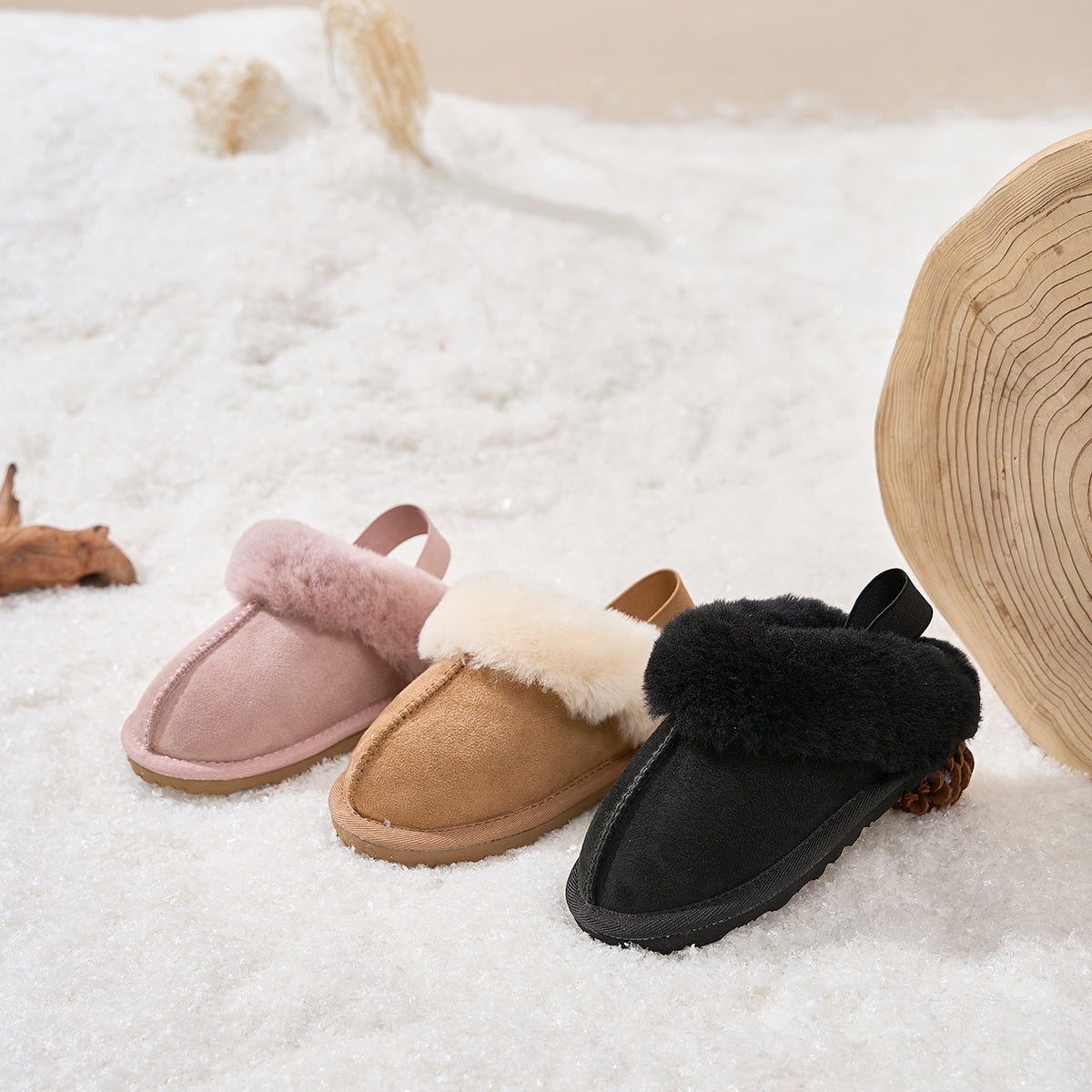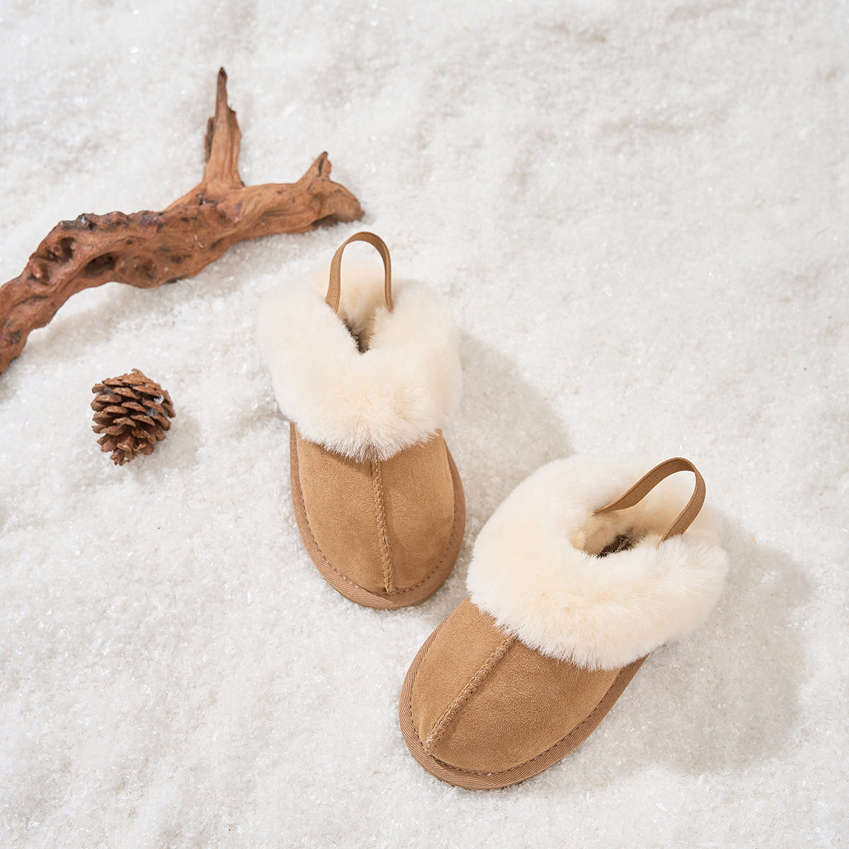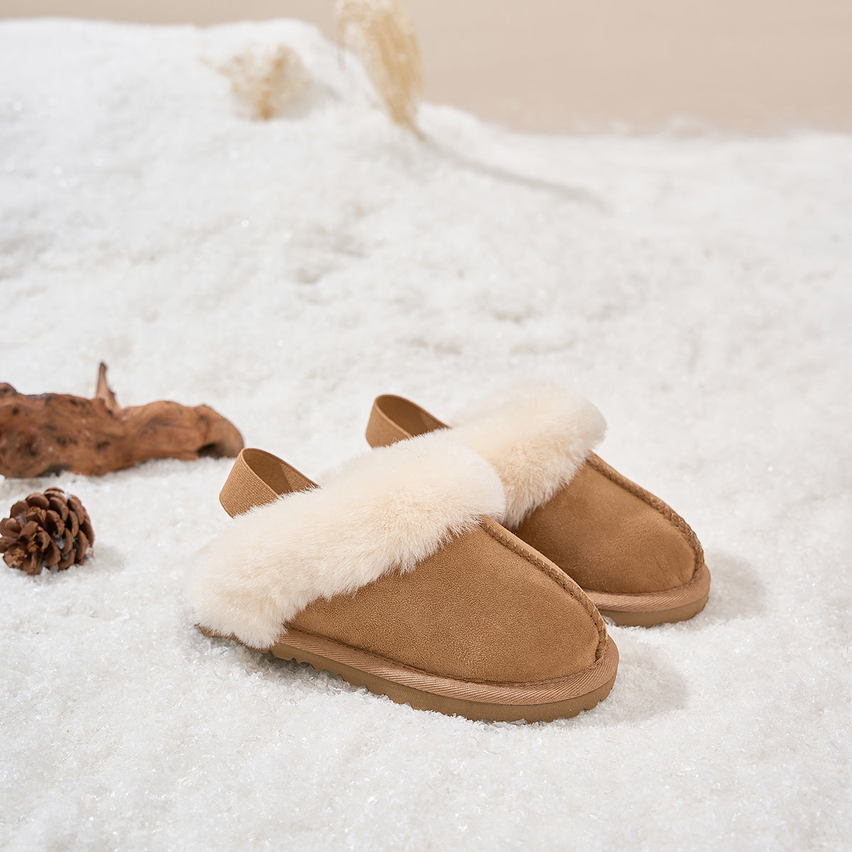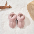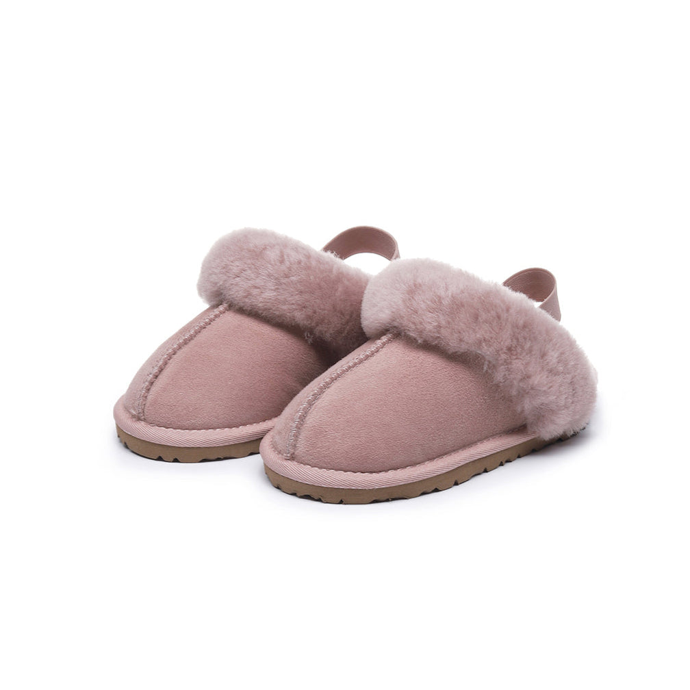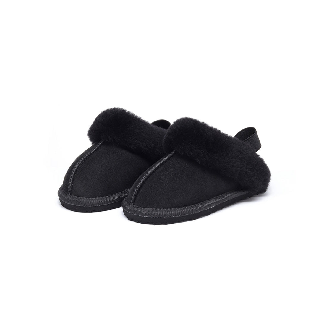 Crafted with Australian twin-face sheepskin, these shoes offer cozy warmth, breathability, and a soft touch. The flexible elastic strap makes them easy to slip on and off, while the EVA sole provides lightweight cushioning and anti-slip safety for active kids.