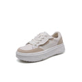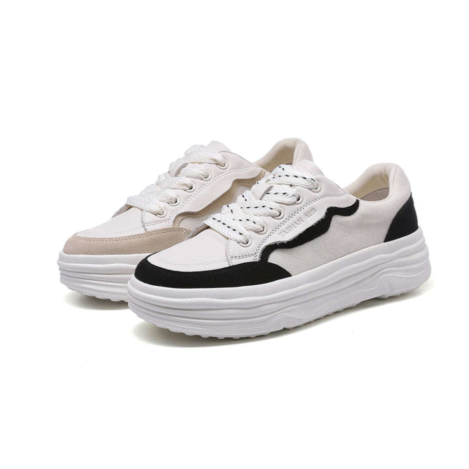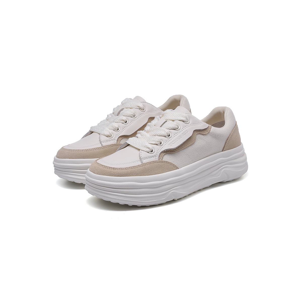Step into everyday comfort and style with these creamy, cozy plimsolls. Featuring a breathable canvas and cowhide leather upper, they deliver the perfect blend of softness and support. The ultra-soft thick rubber foam sole, wide laces, and slight platform design subtly elongate the legs—ideal for casual outings or relaxed weekends.