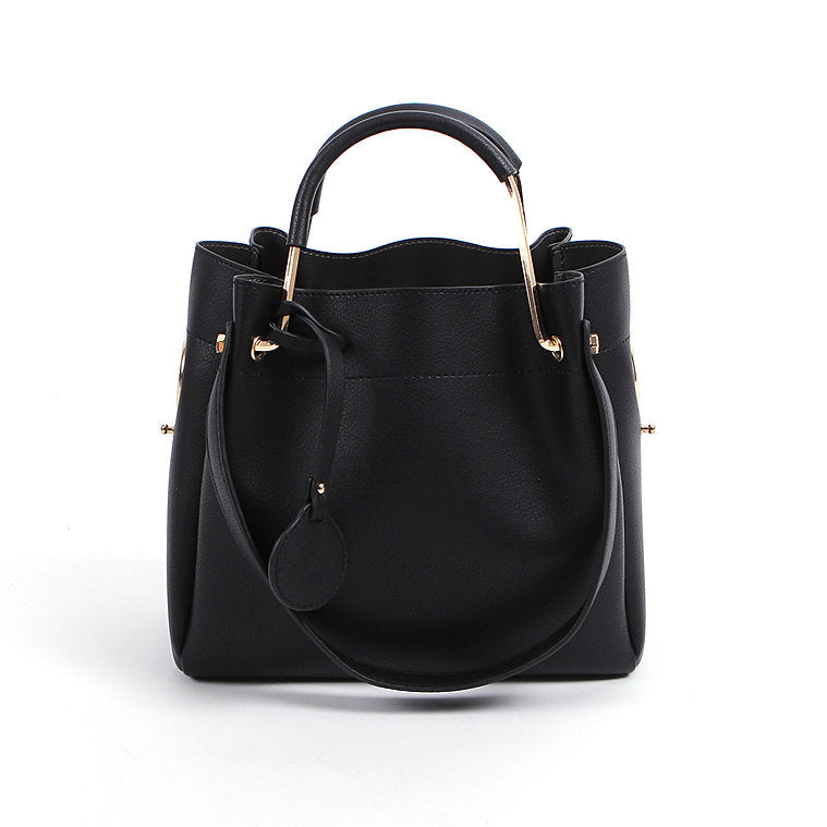 METAL HANDLE TOTE BAG-BLACK TB7010A