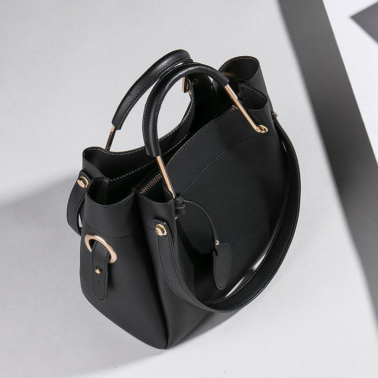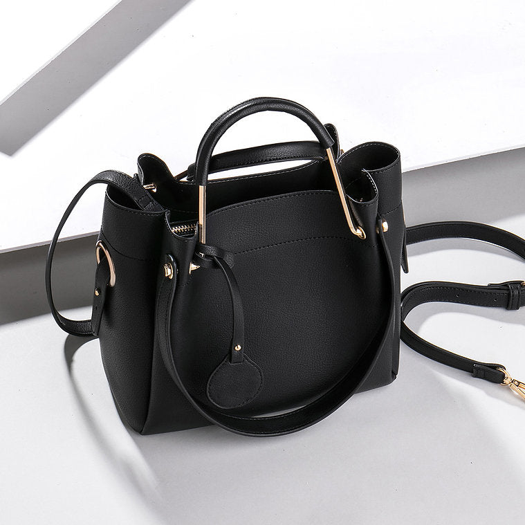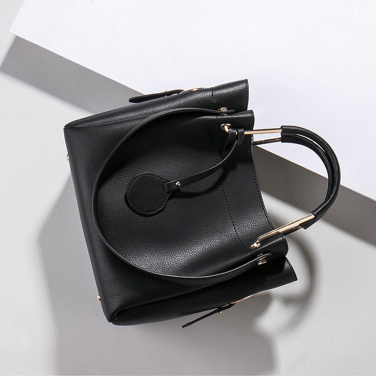 The Metal Handle Tote Bag is a stylish and versatile set featuring both a tote and a matching inner pouch. Crafted from eco-friendly PU leather, this bag combines modern fashion with everyday functionality. The structured tote comes with a sturdy metal handle and can be worn in multiple ways—handheld, over the shoulder, or crossbody—thanks to the adjustable strap.