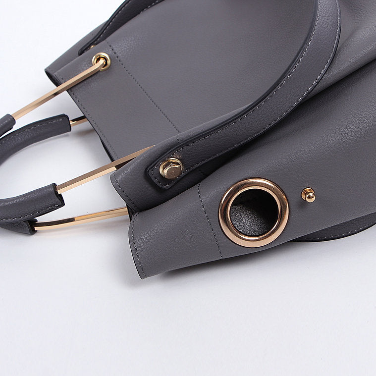 The Metal Handle Tote Bag is a stylish and versatile set featuring both a tote and a matching inner pouch. Crafted from eco-friendly PU leather, this bag combines modern fashion with everyday functionality. The structured tote comes with a sturdy metal handle and can be worn in multiple ways—handheld, over the shoulder, or crossbody—thanks to the adjustable strap.