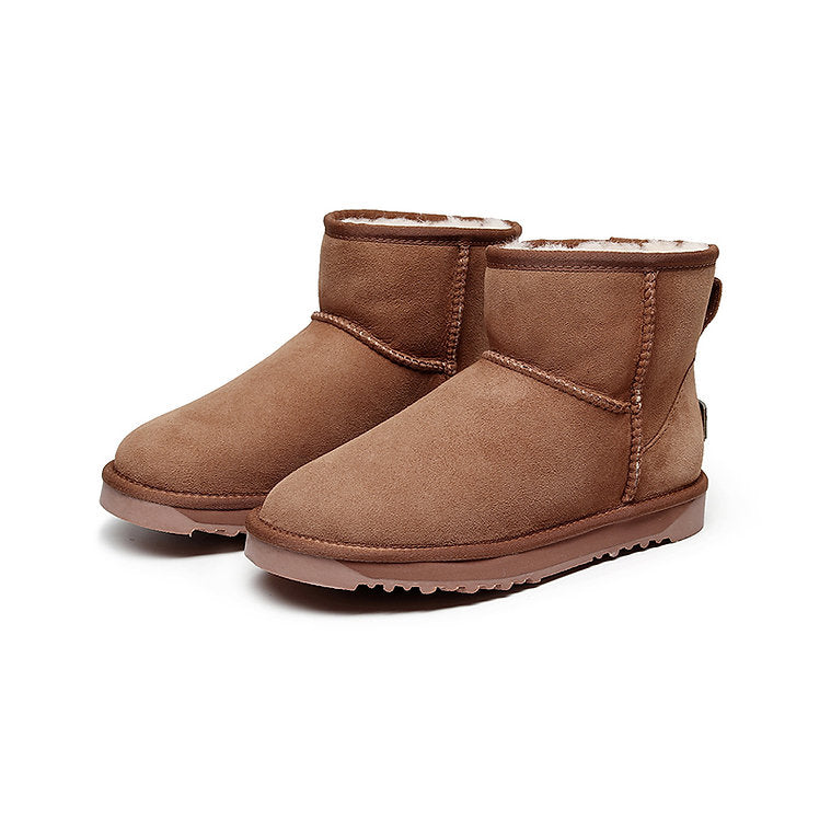 Stay warm and effortlessly stylish with our Mini Ankle Boots, crafted from premium twin-face Australian sheepskin. Blending classic UGG-inspired design with modern minimalism, these boots are perfect for pairing with your favorite winter outfits. The water-resistant rubber sole and high-quality materials offer both comfort and durability, making them a go-to for everyday wear.