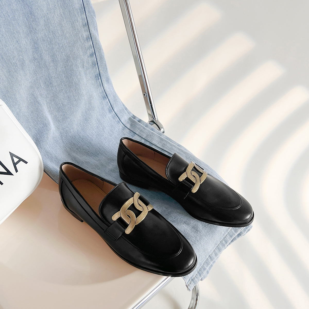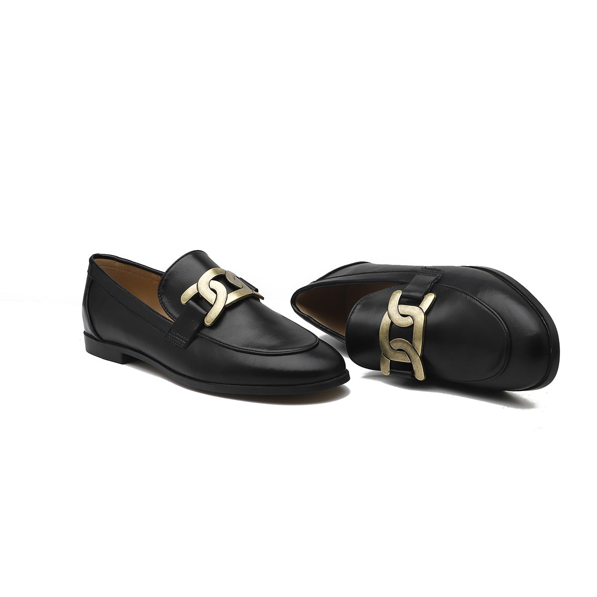 Channel timeless British charm with these vintage-inspired square-heeled loafers. Featuring a sleek synthetic leather finish and a refined silhouette, they’re the perfect foundation piece for both skirts and trousers. Designed for comfort and versatility, these loafers are ideal for daily commutes and effortlessly stylish looks.