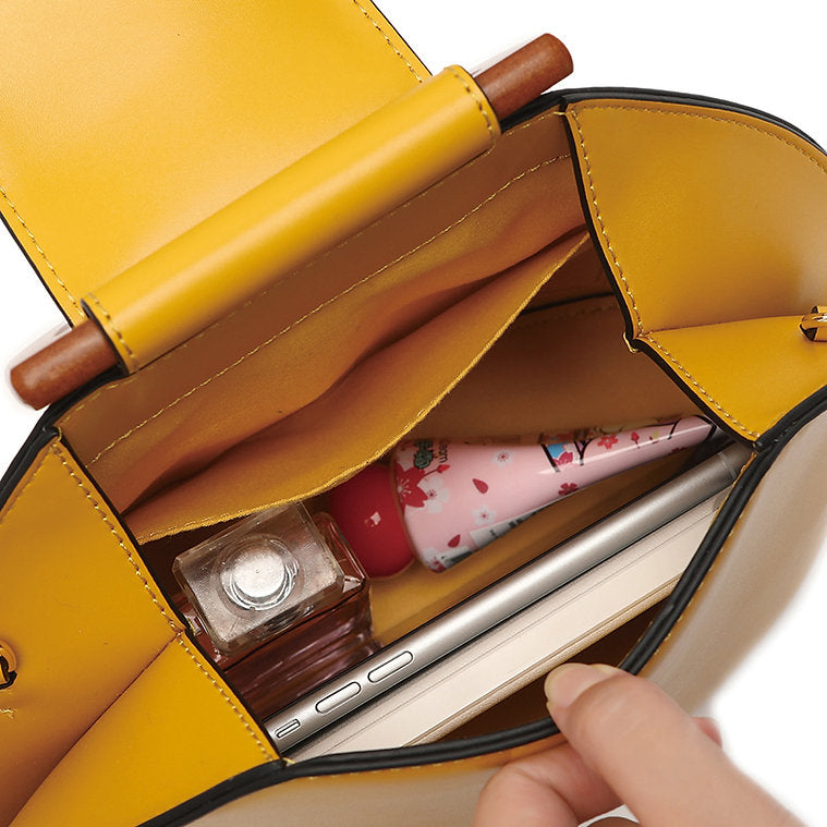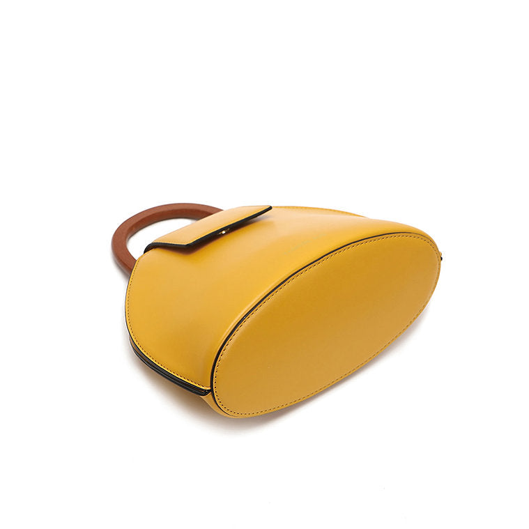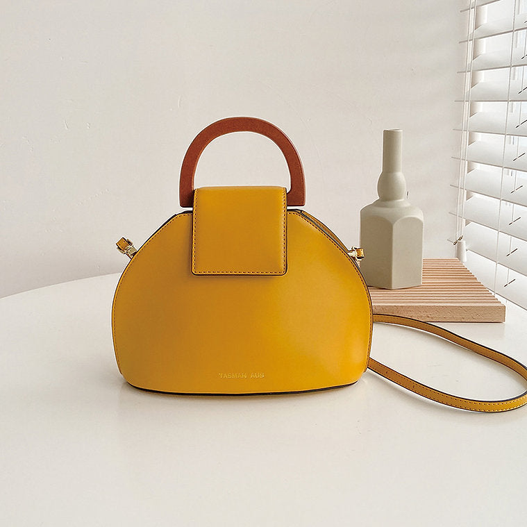 wThe TASMAN Shell Bag is a uniquely designed handbag inspired by the elegant silhouette of a seashell. With its structured shape, curved profile, and contrasting handle, this chic accessory is a stylish statement piece for any outfit. The PU leather exterior offers durability and a sleek, polished look, while the woven fabric lining ensures your essentials are protected and neatly organized.