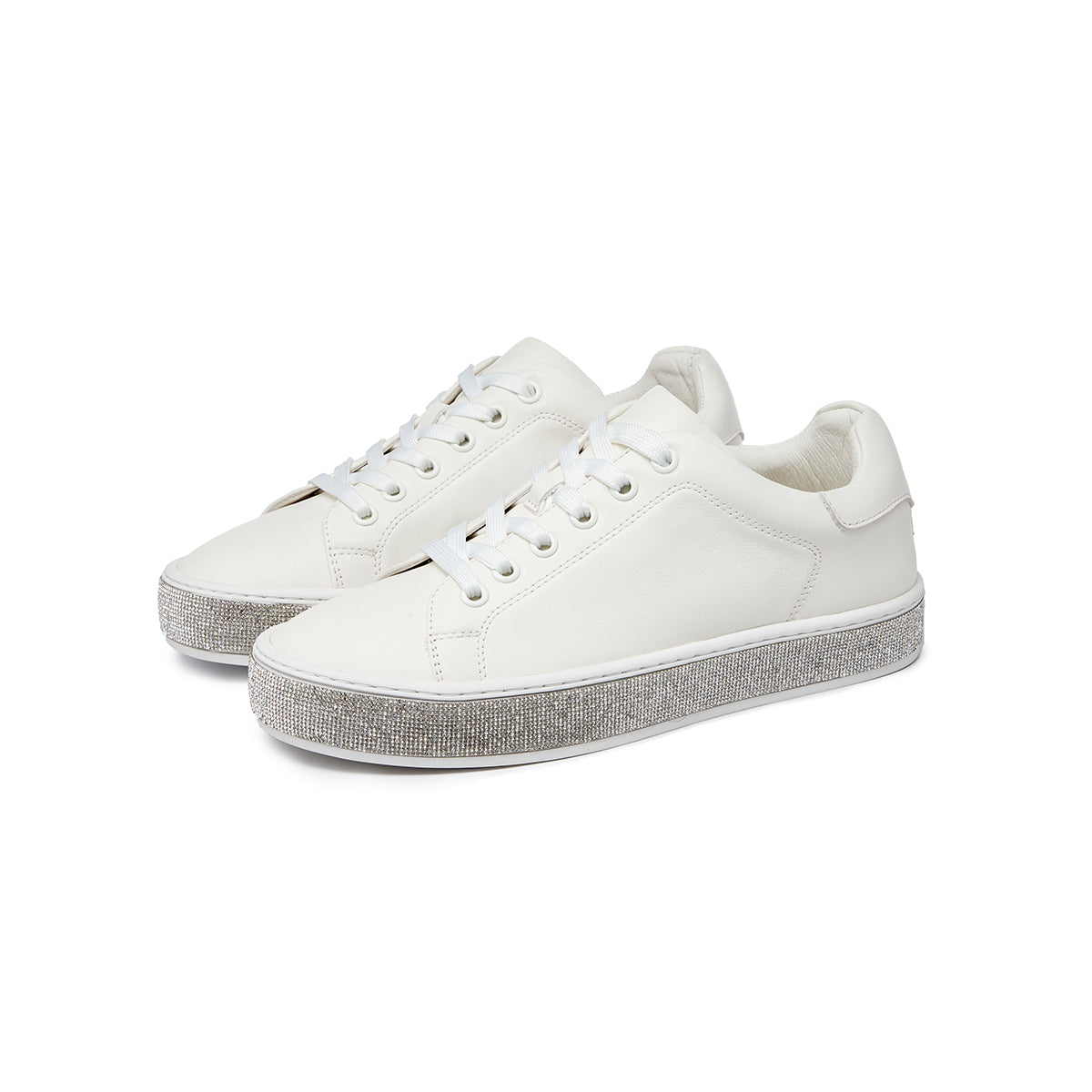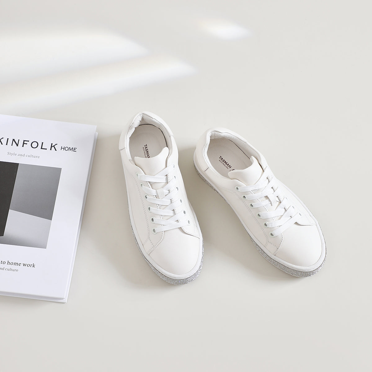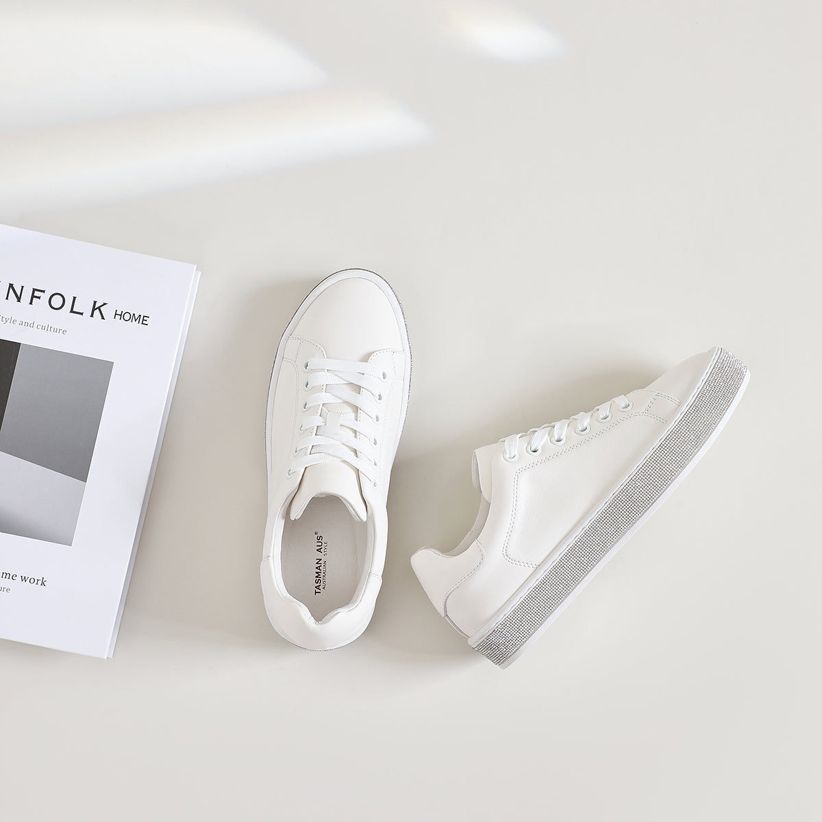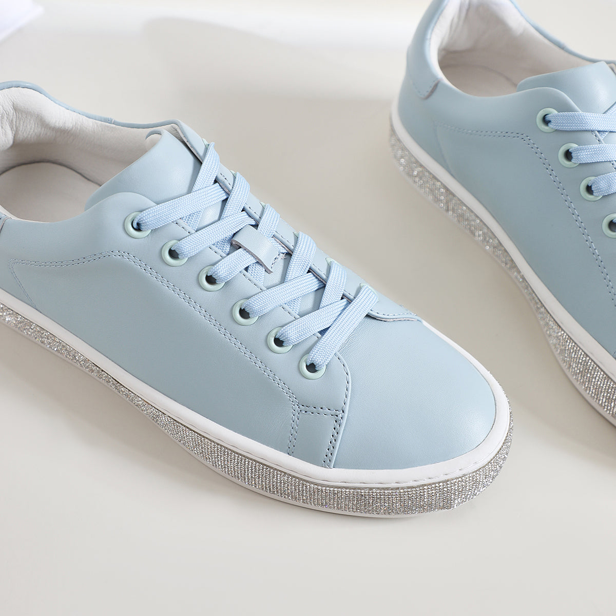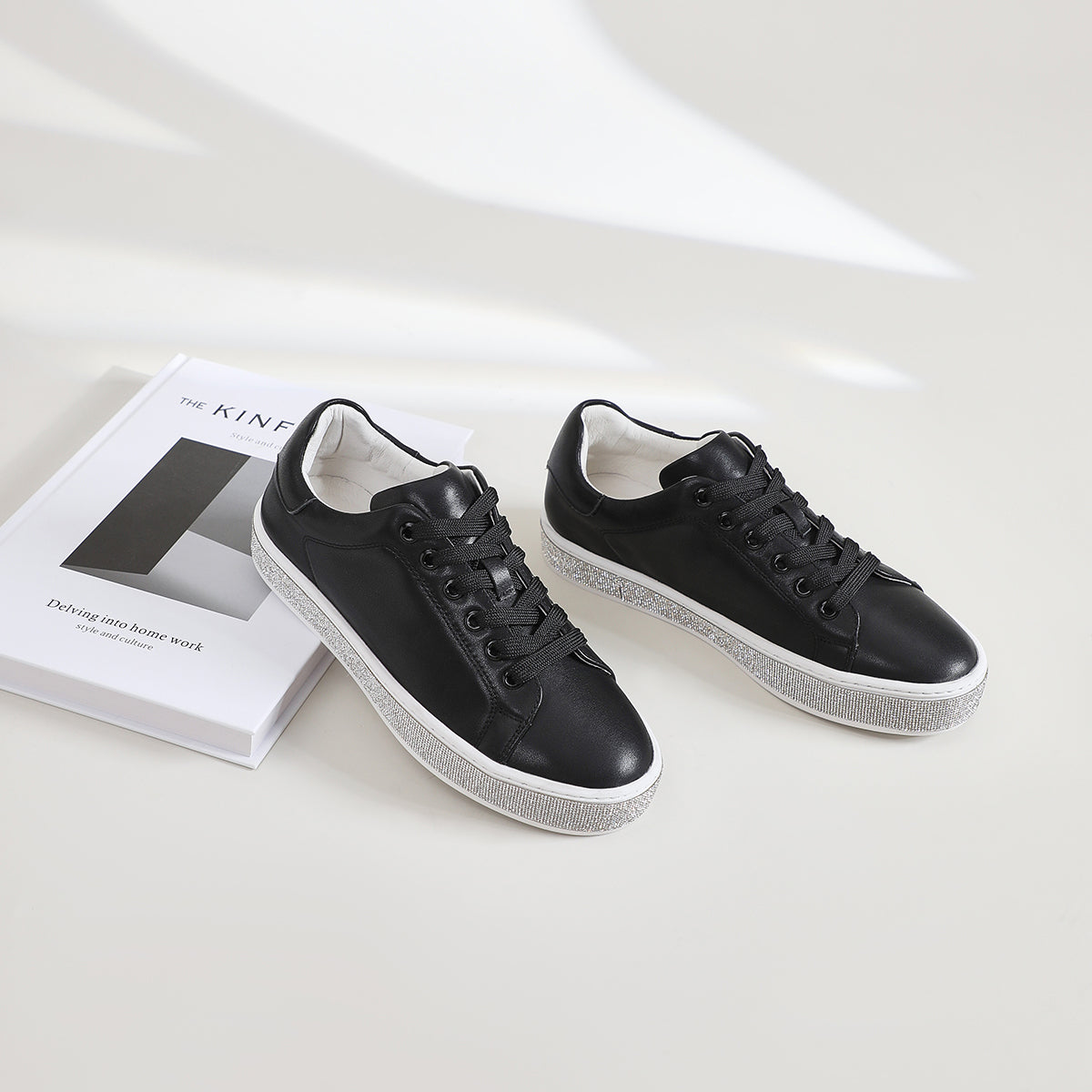 Shine with every step in these eye-catching rhinestone sneakers. Crafted from premium cowhide leather and detailed with shimmering accents, they strike the perfect balance between casual comfort and party-ready style. Whether you're heading to the office or a night out, these versatile shoes add a glamorous touch to any outfit.