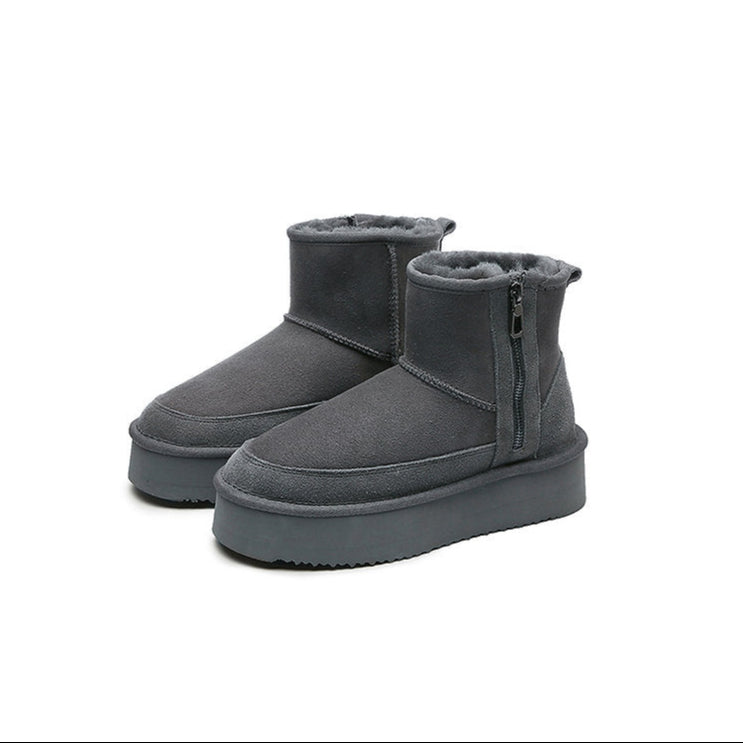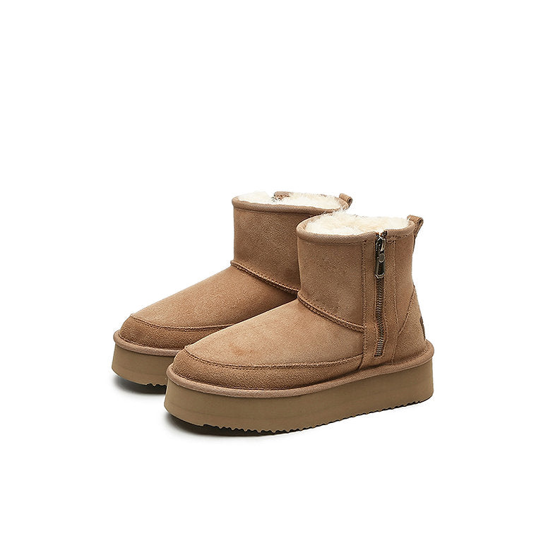 Stay warm and stylish all winter long with these premium side-zip thick-sole boots. Crafted from top-grade Australian sheepskin, they offer unbeatable comfort and a sleek silhouette. The convenient side zipper makes them easy to slip on, while the chunky sole adds both height and stability — a perfect addition to any winter wardrobe.